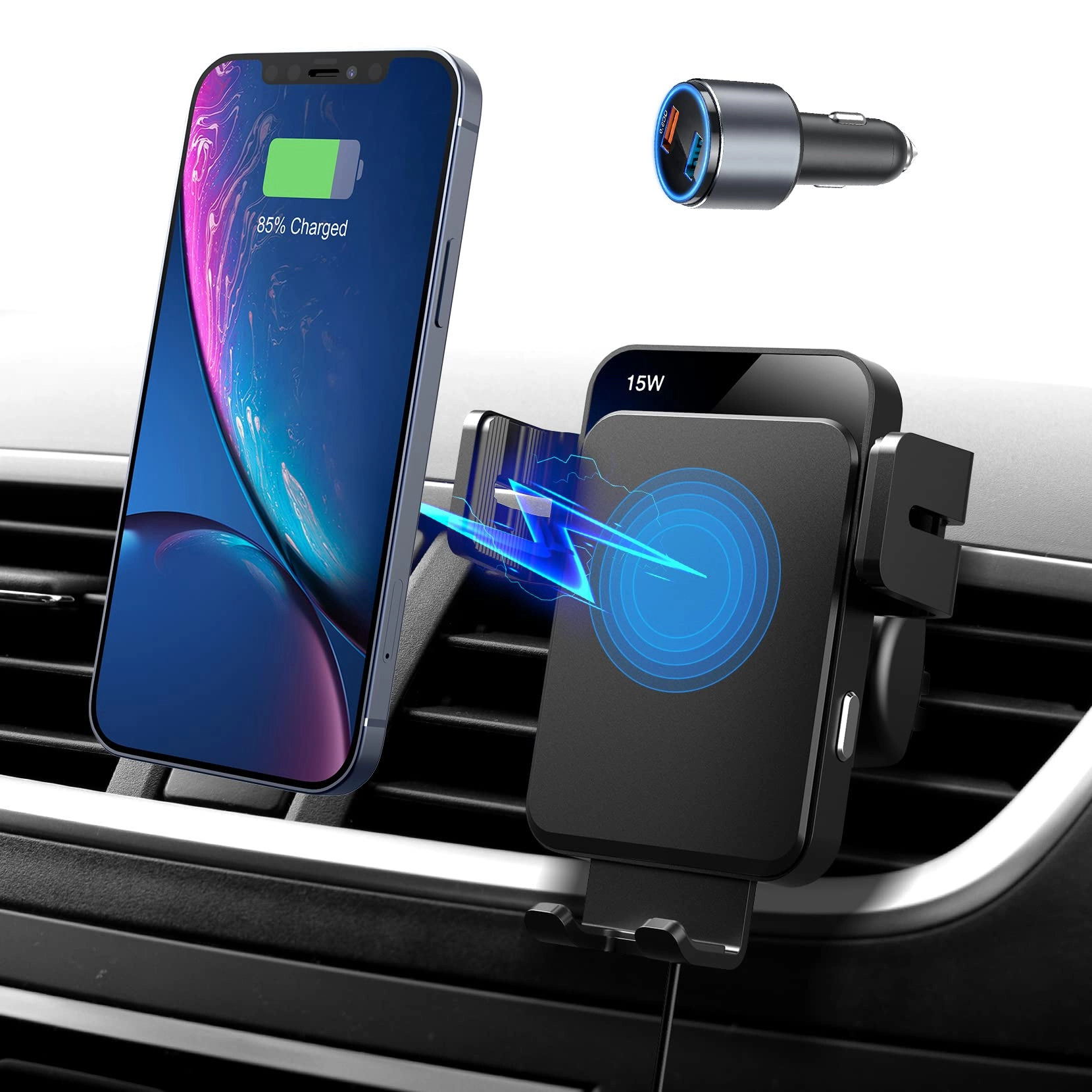 Charge your phone wirelessly while keeping it securely mounted on your dashboard or windshield.